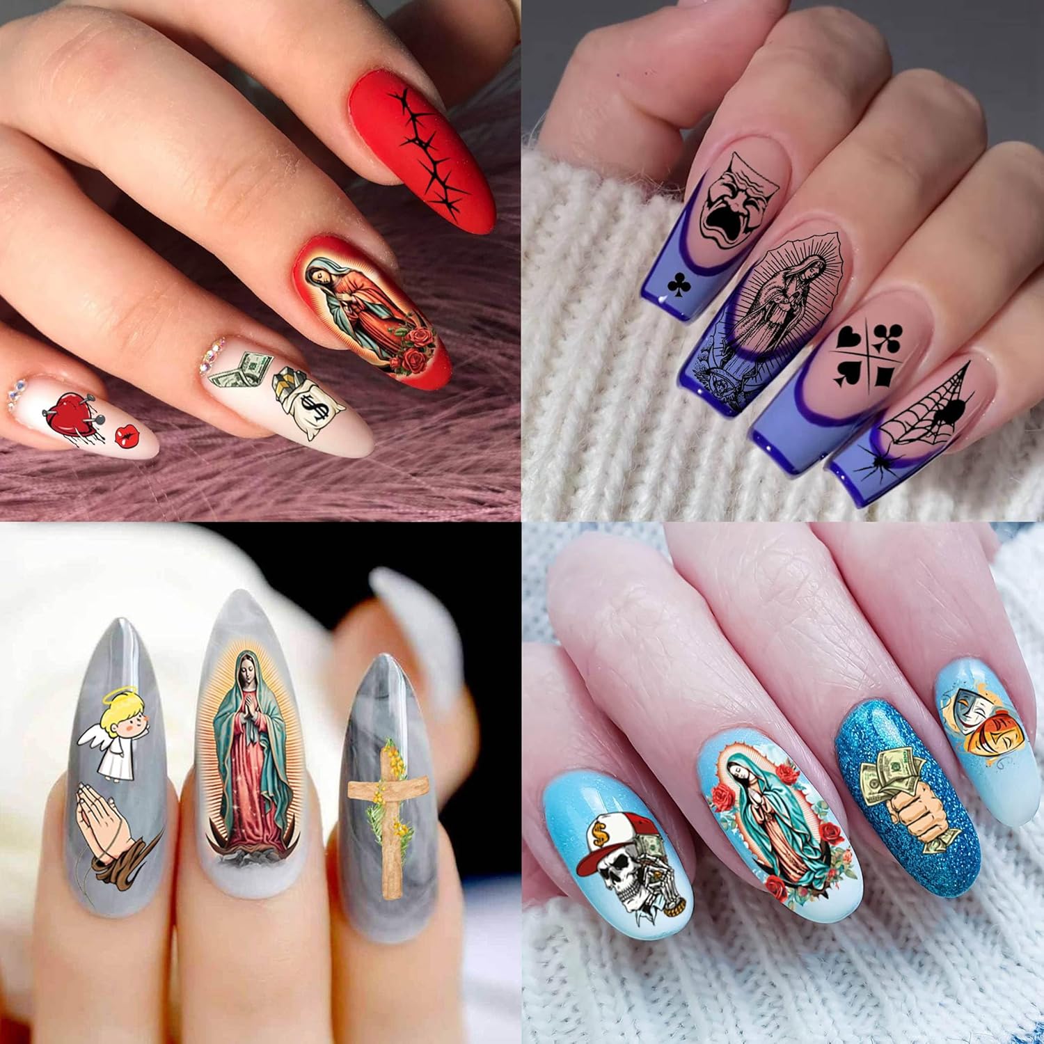 Show Nail Charms Anywhere: Fashionable Gothic Nail Art Supplies Chicana Nail Decals For Gel Polish Will Make Your Nails Shiny Sparkle And Catch Everybody’s Eyes Anywhere. These Nail Accessories Are Perfect Nail Decorations Of Your Fingernails And Toenails, Which Also Suitable For Natural Nails, Acrylic Nails, Artificial Nails And Press On Nails Decors. Large Capacity With Multiple Patterns Are Convenient To Choose The Most Attractive Design That Fits Your Every Finger And Toe.