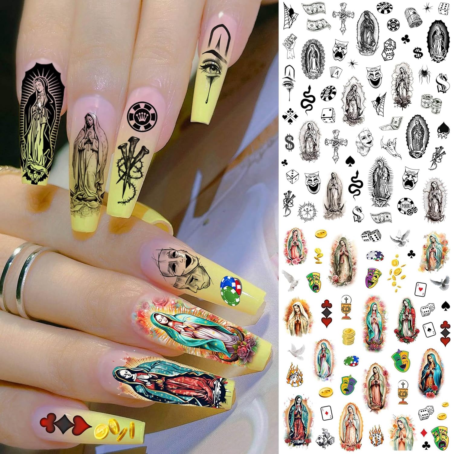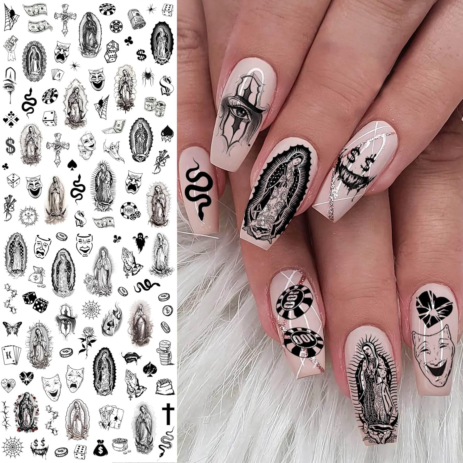 🌊【Show Nail Charms Anywhere】Fashionable Gothic Nail Art Supplies Chicana Nail Decals For Gel Polish Will Make Your Nails Shiny Sparkle And Catch Everybody’s Eyes Anywhere. Bulk Temp Nail Accessories Are Perfect Nail Decorations Of Your Fingernails And Toenails, Which Also Suitable For Natural Nails, Acrylic Nails, Artificial Nails And Press On Nails Decors. Large Capacity With Multiple Patterns Are Convenient To Choose The Most Attractive Design That Fits Your Every Finger And Toe.