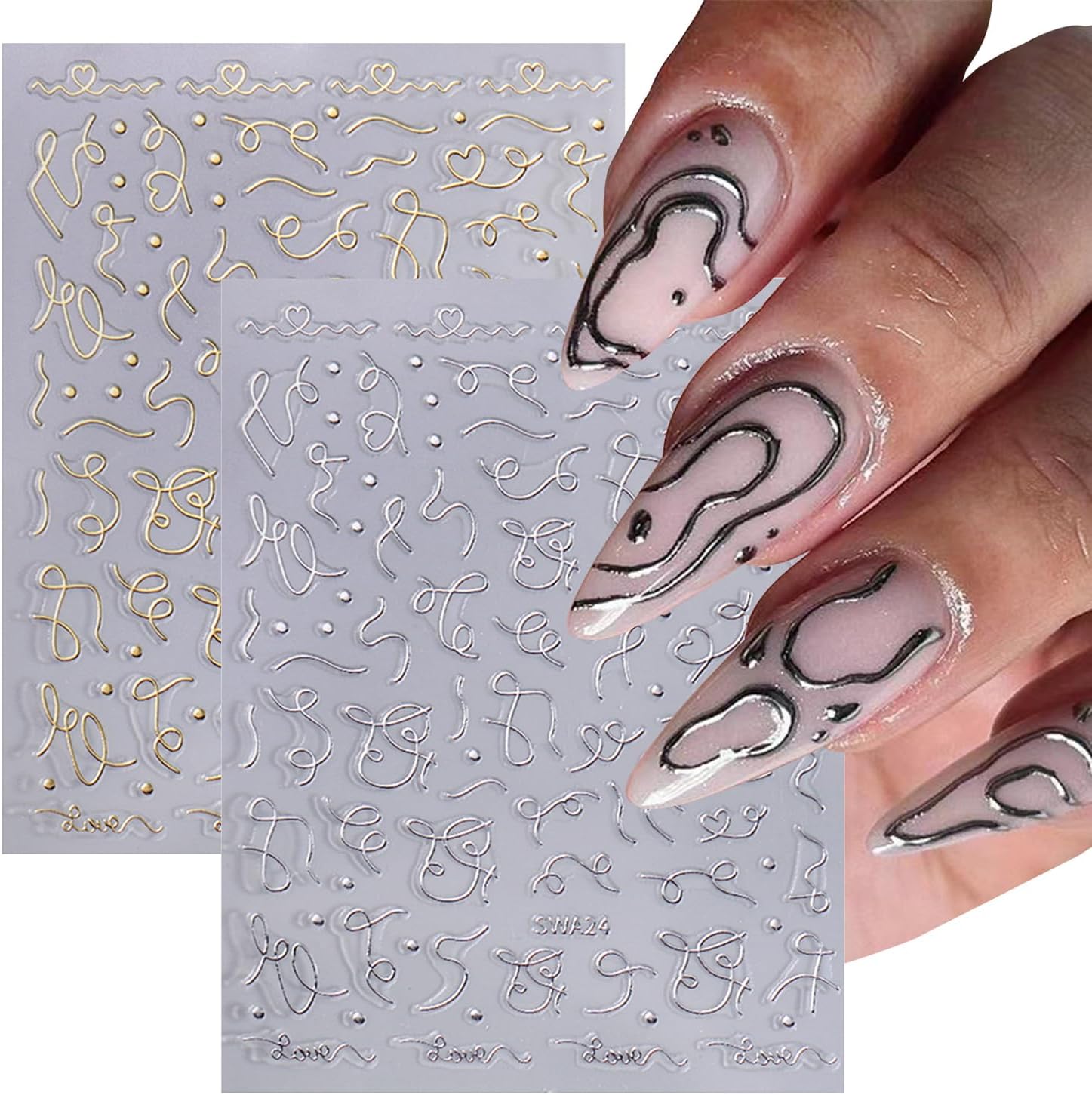 🪩【Package】You will get 6 sheets nail art stickers, Can add a strong fashion atmosphere. unique three-dimensional effects, will not fade, are more realistic than ordinary stickers.Perfect for women girls, exquisite nail design, DIY fashion nail decoration.